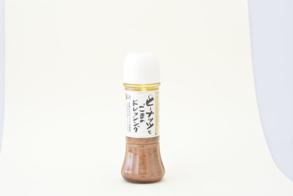 有機丸大豆しょうゆ、三温糖を使用し神奈川県産のつぶつぶピーナッツを加えたコクのあるドレッシングです。