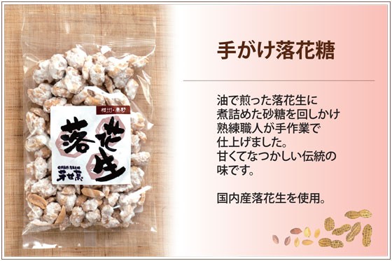 落花生に溶かした砂糖を絡めた、甘くて昔なつかしい伝統の味です。