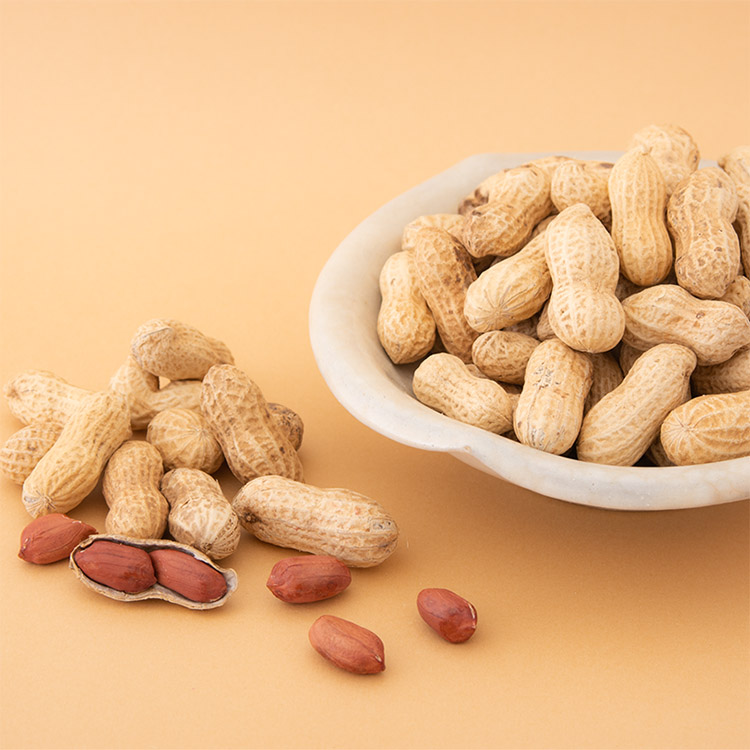 | 栄養成分(100g当り) | 【さや付落花生】エネルギー588kcal、タンパク質25g、脂質49.6g、炭水化物21.3g、食塩相当量0g【塩南京】エネルギー589.7kcal、タンパク質27.7g、脂質42.3g、炭水化物24.7g、食塩相当量0.8g【バターピーナッツ】エネルギー641.3kcal、タンパク質20.2g、脂質49.1g、炭水化物29.8g、食塩相当量0.8g【落花糖】エネルギー563kcal、タンパク質14g、脂質34g、炭水化物51.4g、食塩相当量0g【落花生甘納豆】エネルギー414kcal、タンパク質7.4g、脂質18.5g、炭水化物54.4g、食塩相当量0.35g ※推定値 |